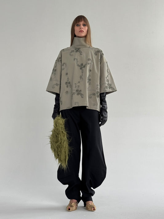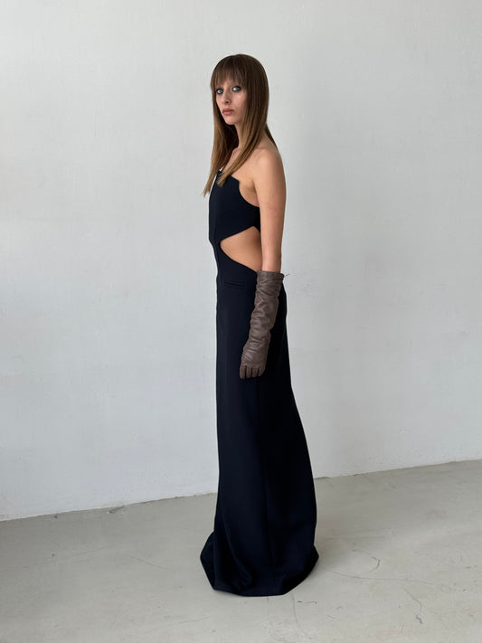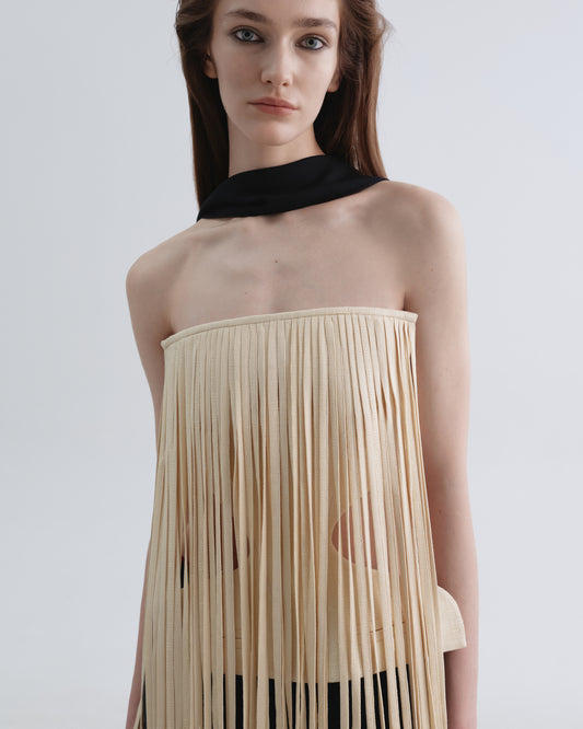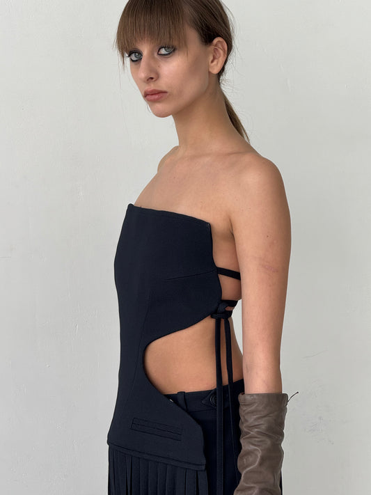 Black Apron with Waist Cutouts and Long Stitched-ropes