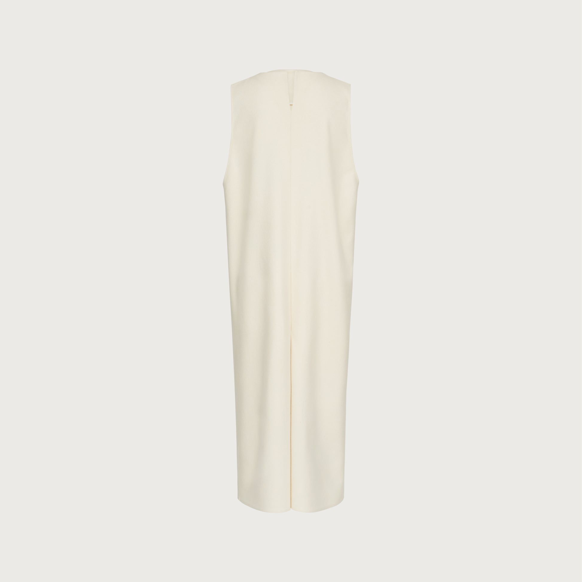 This dress has an oversized fit, an increased neckline, deep armholes, and two inverted pleats on the frond and on the back.